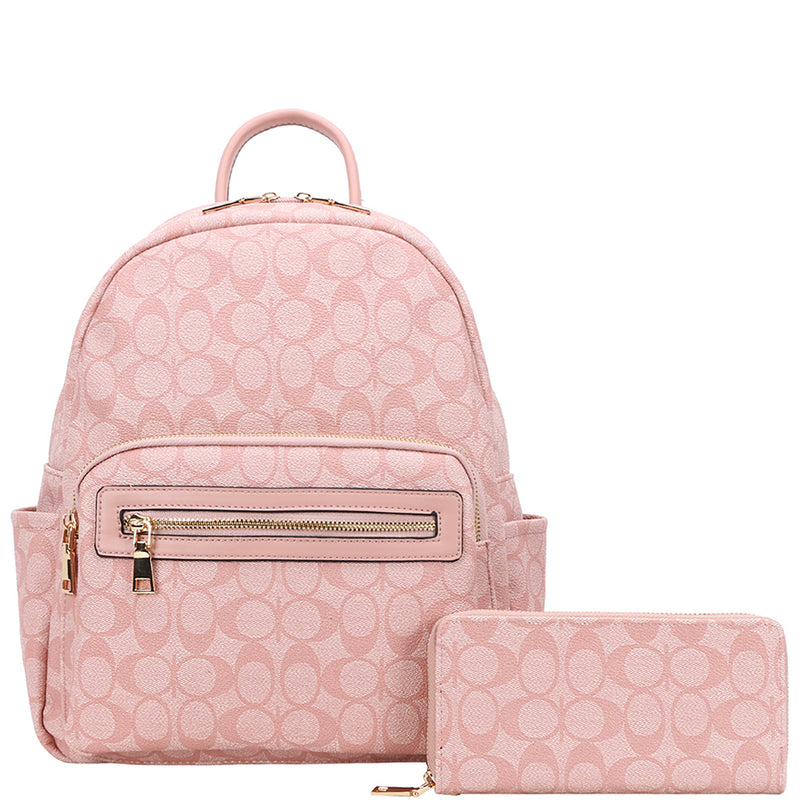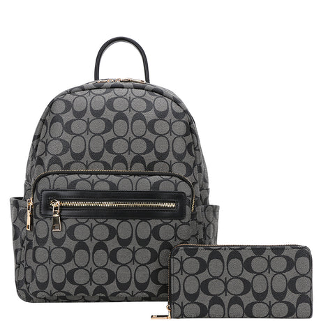 Oval Print Backpack W Wallet Set