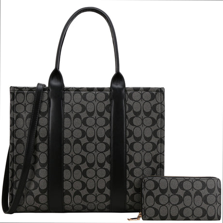 Oval Print Handle Tote W Wallet Set