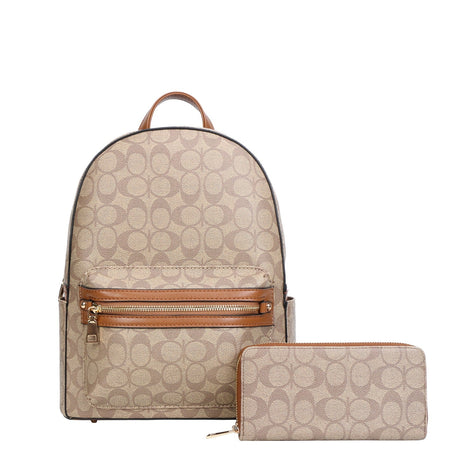 Trina Oval Print Backpack with Wallet Set