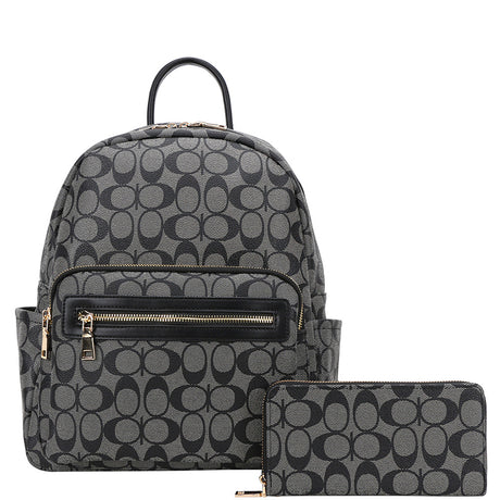 Oval Print Backpack with Wallet Set