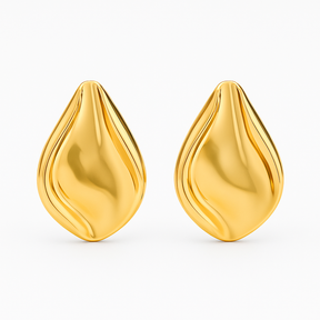 These statement earrings feature a bold teardrop silhouette with a wavy, sculptural design. Crafted in a high-shine gold tone finish, they reflect light beautifully, adding an elegant yet daring touch to any outfit. Perfect for elevating both casual and formal looks with a touch of glamour.