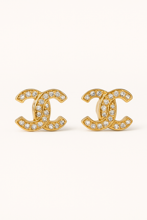 These elegant stud earrings feature a distinctive double "C" design, crafted with a polished gold-tone base and encrusted with sparkling clear crystals for a refined finish. The symmetrical curves create a chic and timeless look, making them versatile enough for both everyday wear and special occasions. Lightweight and stylish, they add a subtle touch of glamour to any outfit.