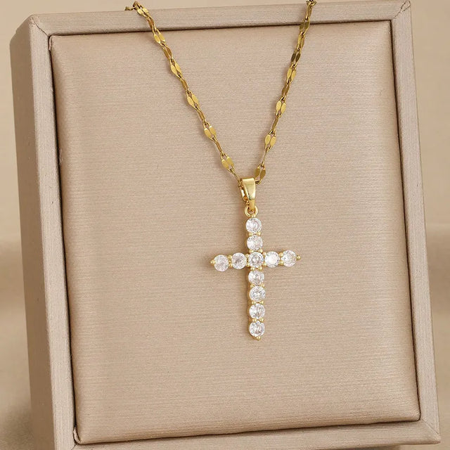 Gold Rhinestone Cross Necklaces